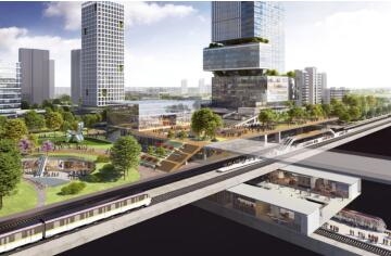 作為成都首批次場站綜合開發(fā)的14個(gè)TOD示范項(xiàng)目之一,成都行政學(xué)院站TOD總投資超150億,項(xiàng)目位于成都東進(jìn)橋頭堡,以站點(diǎn)為核心,周邊半徑3公里范圍內(nèi)共規(guī)劃有6條軌道線。成都行政學(xué)院TOD是成都東西向干線2號(hào)線(已運(yùn)營)和成都第二條環(huán)線9號(hào)線(規(guī)劃)的換乘站點(diǎn)。根據(jù)《成都市軌道交通場站一體化城市設(shè)計(jì)導(dǎo)則》,行政學(xué)院站為組團(tuán)級(jí)站點(diǎn)。項(xiàng)目由大型商業(yè)綜合體、五星級(jí)酒店、超甲辦公、創(chuàng)意街區(qū)、住宅、學(xué)校等業(yè)態(tài)構(gòu)成,以“東進(jìn)門戶、創(chuàng)驛綠谷”為主題打造為以公共交通結(jié)合慢行體系為主要出行方式的“活力中心”。結(jié)合功能板塊,形成“交通圈”“商業(yè)圈”“生活圈”相互支撐的城市格局。通過加強(qiáng)站點(diǎn)與產(chǎn)業(yè)功能區(qū)銜接,提升營商環(huán)境、吸引高端要素聚集,打造創(chuàng)新開敞空間;健康運(yùn)動(dòng)場景依托豐富的綠色資源,滿足多層次人群需要的體育運(yùn)動(dòng)場景,完善綠道體育消費(fèi)新場景;生活?yuàn)蕵穲鼍疤峁┒喾N業(yè)態(tài)布局,同時(shí)強(qiáng)調(diào)多元、互動(dòng)、公共性,提升街區(qū)的活力。