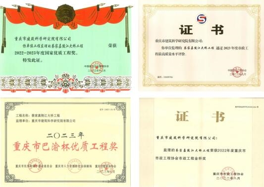 國家優質工程獎設立于1981年,是經國務院確認的我國工程建設領域設立最早、規格最高,跨行業、跨專業的國家級質量獎,除獲此獎項外,蔡家嘉陵江大橋還曾獲得市政工程最高質量水平評價(原國家市政工程金獎)、重慶市市政工程金杯獎、三峽杯優質結構工程獎、巴渝杯優質結構工程獎等多項榮譽,樹立起建橋豐碑。